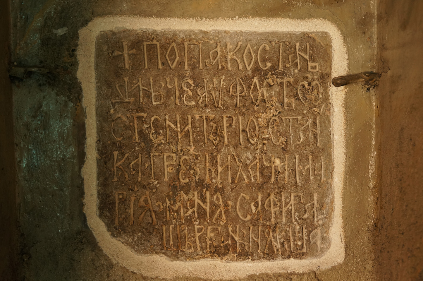 Biserica din zid pe care o vedem acum pe deal, a fost ctitorită, prin osteneala preotului Popa Constandinu și a soției sale Stanca Prezvitera, între 1763 – 1765 de Constantin Potoceanul (căpitan de jalbe la curtea lui Constantin Nicolae Mavrocordat) și de soția sa Maria, așa cum arată pisania bisericii, astăzi dispărută: ”Această Sf(ântă) biserică s-au fondatu la anulu 1765 septem(vrie) 15 cu toate cele necesare la înfrumusețarea ei, de către repausatulu întru fericire d(omnu)lu Constantin, ginerile d(umnea)lui Genea Potoceanu, împreună cu soția sa Maria.”[5]