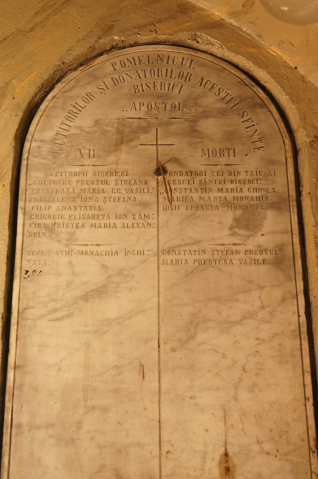ISTORICUL COMUNITĂȚII PAROHIALE. [prezentarea generală a localității/cartierului d.p.d.v geografic, istorico-demografic, arheologic, cultural, economic]. Biserica poartă numele de “APOSTOL”, sau cum îi ziceau cei din vechime “Biserica ot Mihalcea Apostol Pârcalabul”[1]. Este așezată în Calea Văcărești nr. 143, București și are hramul Sfinții Împărați și întocmai cu Apostolii Constantin și maica sa Elena. Actuala pictură murală din biserică a fost facută în ulei. Sunt multe picturi ale lui Tătărăscu, iar altele sunt executate în 1894 de I. Trombitescu – fost cirac al lui Tătărăscu și Ioanid. I. Trombițescu – ajutat de pictorul I.S. Martinovici.